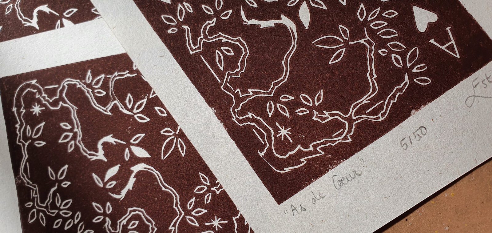 Chaque linogravure est unique par sa technique d’impression manuelle. Les modèles sont tirés à 50 exemplaires numérotés et signés.